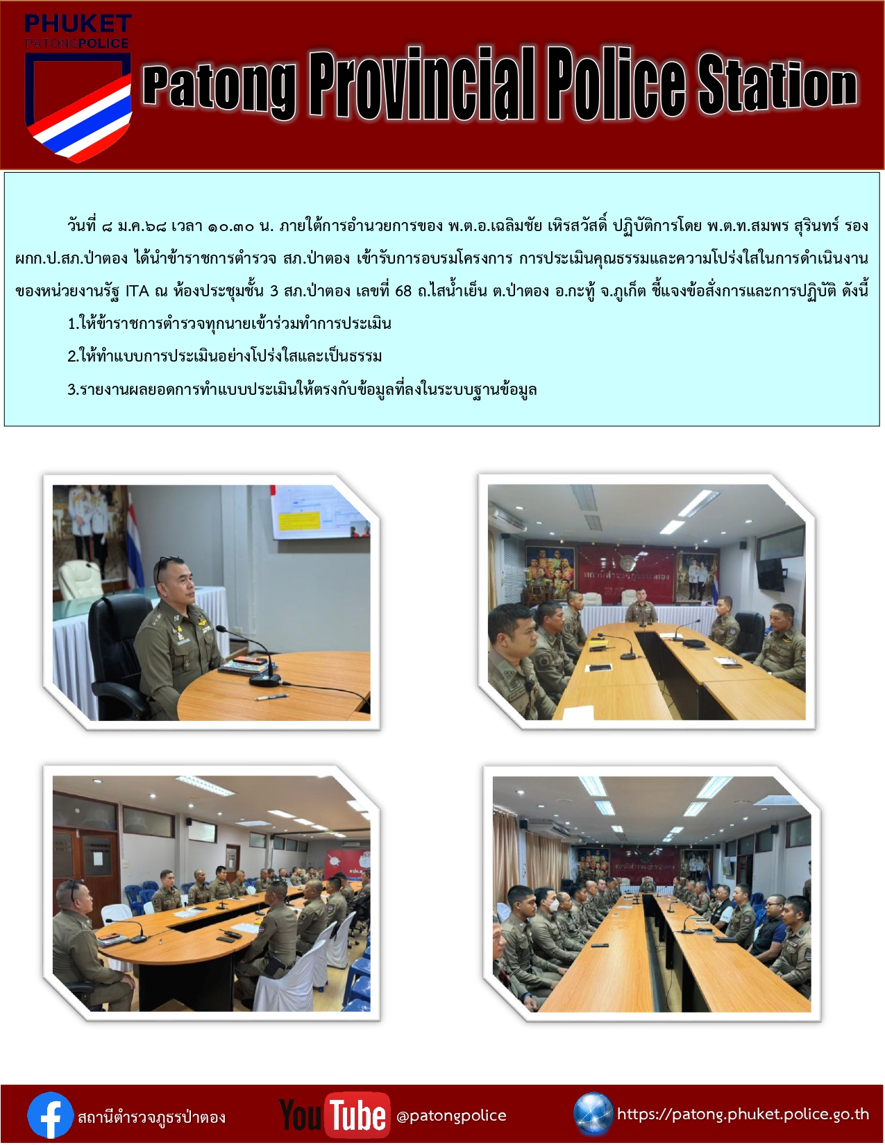 ได้จัดอบรมข้าราชการตำรวจในสังกัดเรื่องเสริมสร้าง คุณธรรมและความโปร่งใส การต่อต้านการทุจริต และ ต่อต้านการรับสินบน ประจำปีงบประมาณ 2568